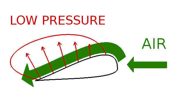 Contrary to what we could think, the force lifting the plane is created by the low pressure standing on the upper side of his wings. This low pressure is created by the acceleration of the air going along the airfoil. The air pressure, thus accelerated, decreases.
